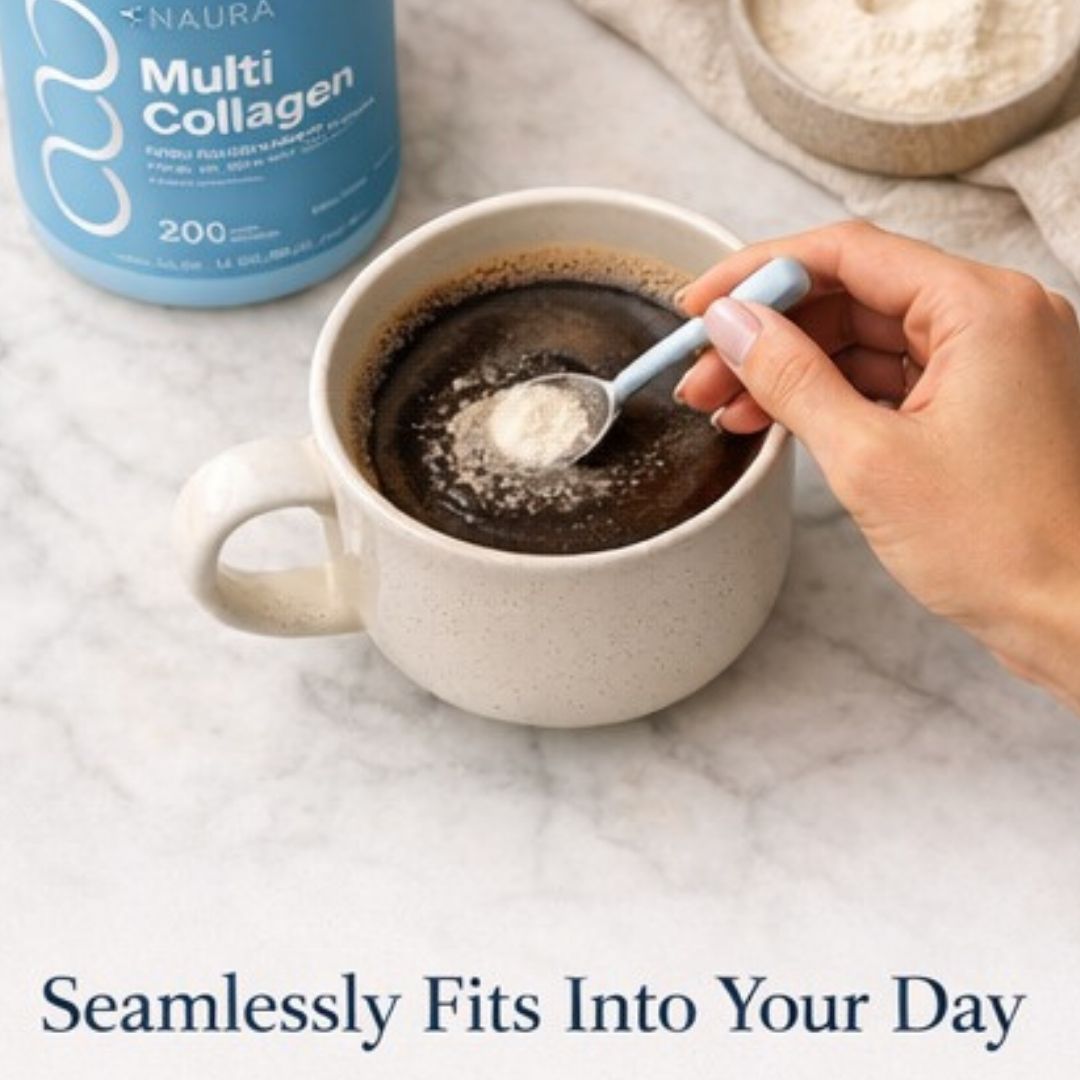 Naura combines multiple collagen types to help improve skin elasticity, hydration and overall radiance from the inside out.